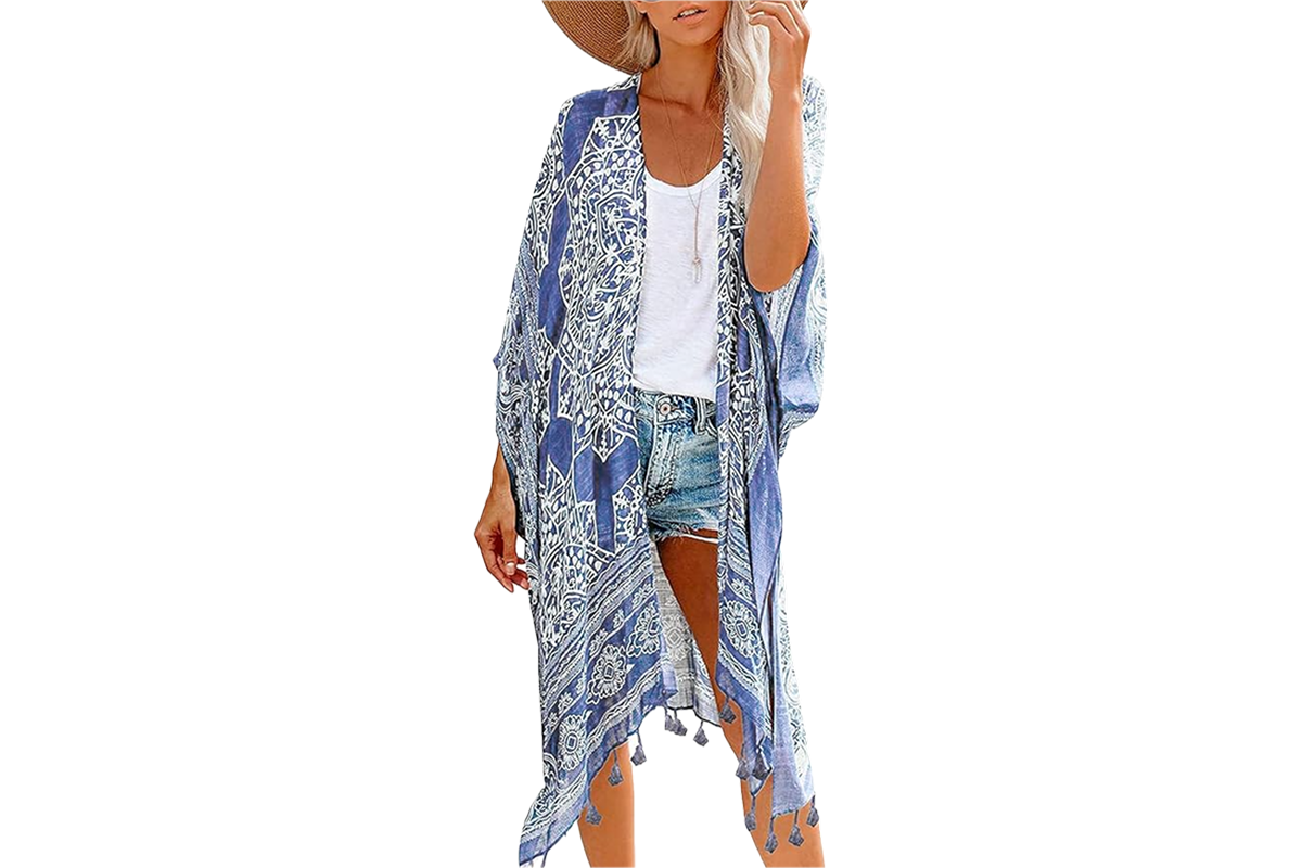 “This was on a list of ideas for summer and I clicked the link to get it. I have worn it way more than just as a cover up at the pool. It has great BoHo vibes and the blue is so flattering! It is light, soft, and just a great length where it doesn’t seem like a swimwear piece. I am SO happy I have this – really. I have styled it in so many ways and I always get compliments when I wear it!”