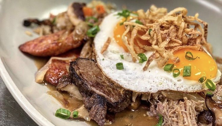 Looking for loco moco on Oahu? The classic version of Hawaii’s heftiest dish, the loco moco, starts with two scoops of white rice, piles on a hamburger patty, adds a fried egg and pours gravy on top. Hungry teenagers in Hilo are said to be behind its invention in 1949, but it quickly became popular across the islands with all ages. Now it can be found in many varieties, reflecting the personal taste of the chef. It’s a satisfying meal, meant for budget-friendly and hungry customers. Here are our favorite places for loco moco.