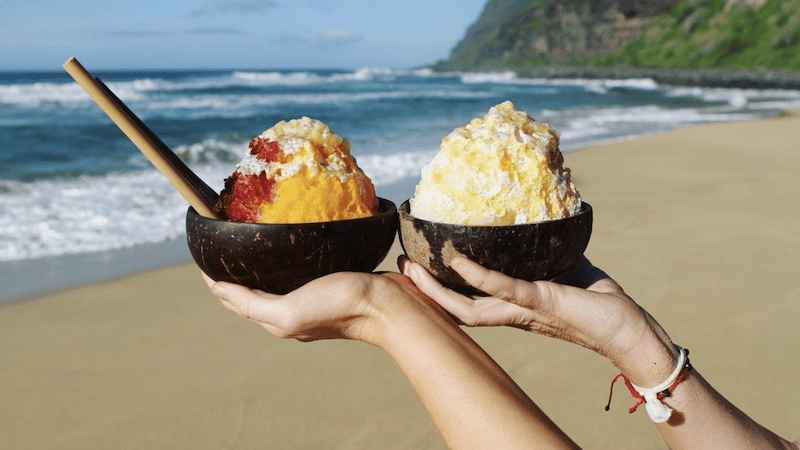 The snowy treat known as shave ice (not “shaved”) came to Hawaiʻi with the Japanese and Okinawan immigrants who worked on the sugar plantations in the late 1860s. By the mid-20th century, the modern version of shave ice, with its rainbow of flavors and additions such as ice cream and “snowcaps” of sweetened condensed milk, was typically found at humble Japanese-American grocery stores such as M. Matsumoto on Oahu’s North Shore. Today, you can expect even more flavors, gourmet natural syrups, and options such as chewy mochi balls or sweet red adzuki beans. Here are our favorite spots for shave ice on Kauai.