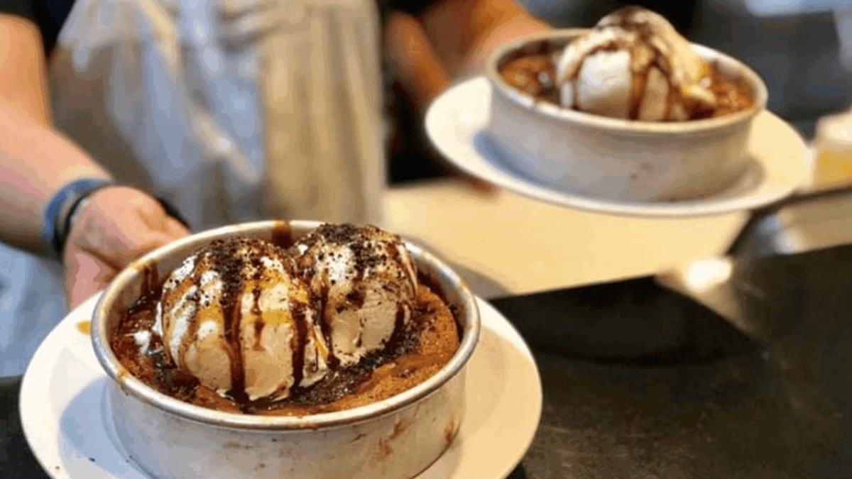 For a leisurely dessert try the signature Holy Manoli at Manoli’s Pizza Company. This huge chocolate chip cookie is baked to order (allow 15 minutes for preparation) and served in a skillet with vanilla ice cream, hot fudge, caramel sauce, and cookie crumbles on top. It’s definitely a shareable dessert!