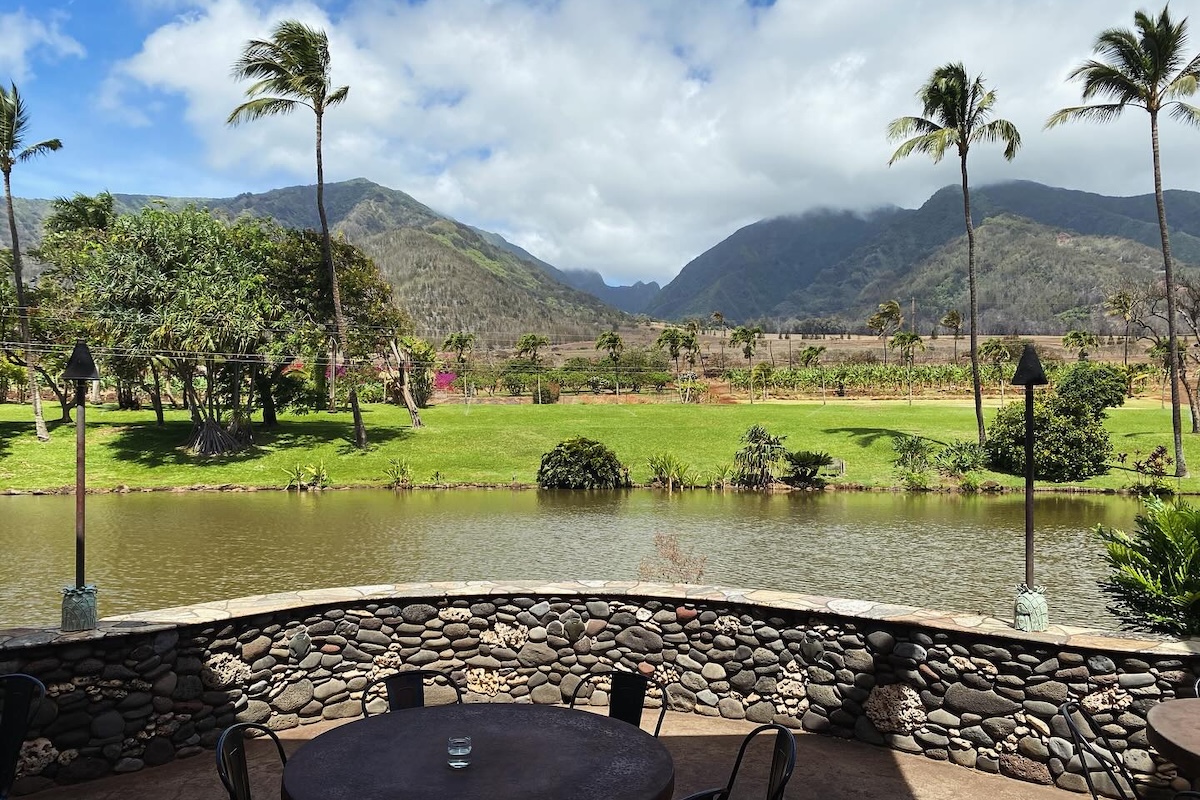 Part of a family-owned chain, this Café O’Lei location has the most dazzling location, overlooking a large pond, farmland and green mountains from Maui Tropical Plantation, with vintage sugarcane machinery and trains serving as sculptural elements. Skip the skimpy shrimp salad in the Kumu Farms half papaya (admittedly grown on site) in favor of heartier options such as tempura mahi and chips, macnut chicken sandwich or vegetable laulau (seasonal vegetables cooked in a ti leaf with Thai coconut curry).