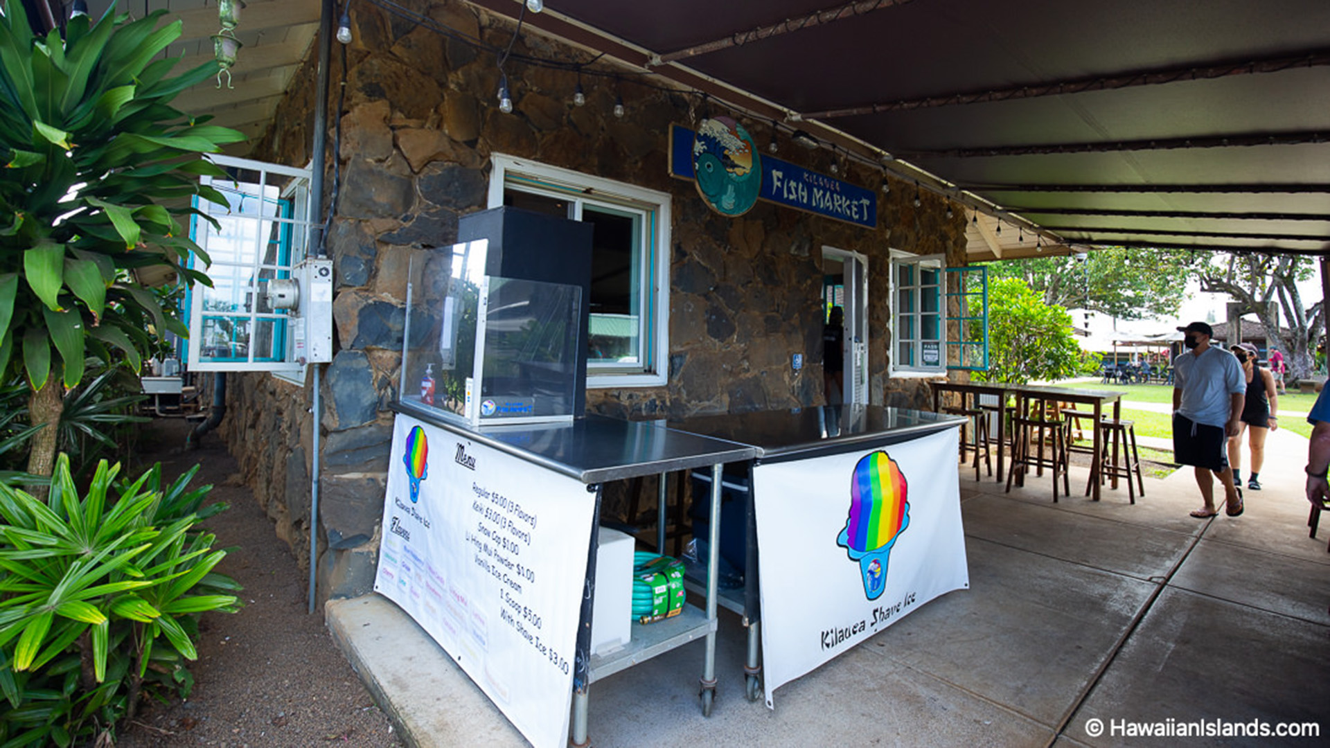 Located right outside this fish market is shaved ice — whether you get a meal first, or come only for their shave ice, it’ll be worth your time. There are a variety of flavors, most of which are traditional for shave ice.